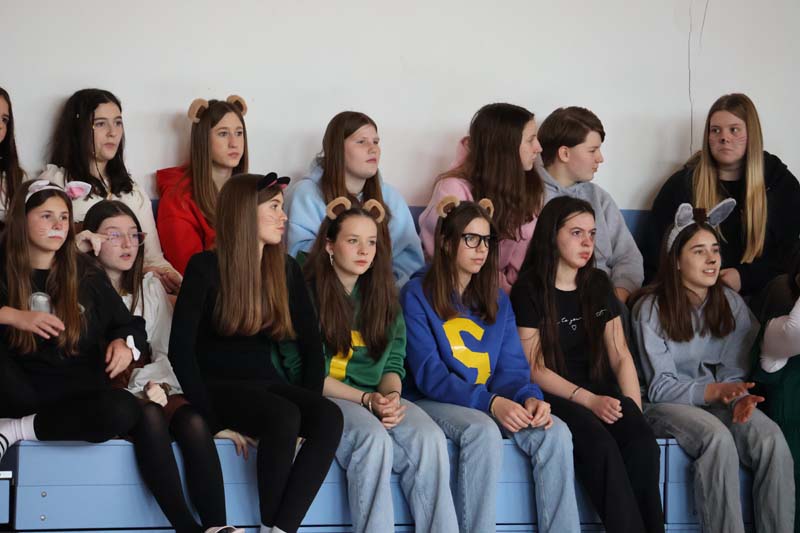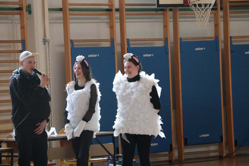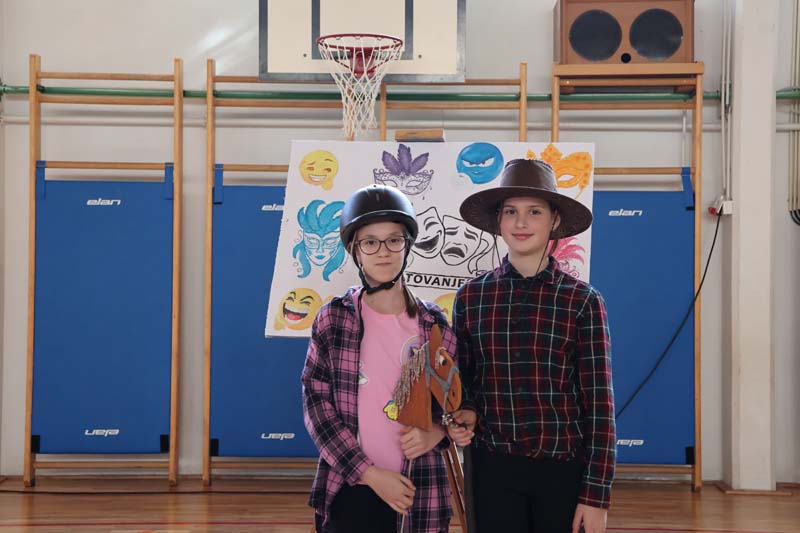 Tudi letos smo na naši šoli veselo in ustvarjalno pustovali. Velika večina učencev in učiteljev je cel dan preživela v maskah, ki so pričarale pravo pustno vzdušje. Še posebej zanimivo je bilo 5. in 6. šolsko uro, ko je v telovadnici potekal izbor najboljših mask. Komisija je imela zelo težko delo, saj je bilo izvirnih idej res veliko, nagrade pa so tudi letos prispevali devetošolci.