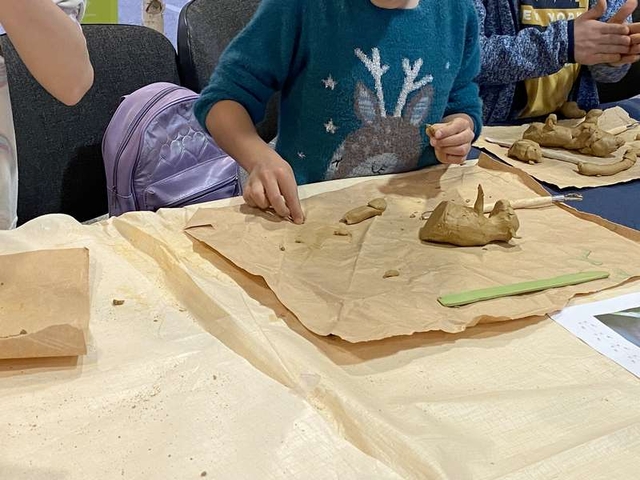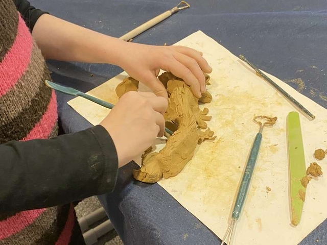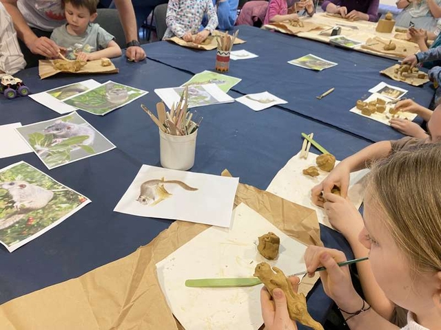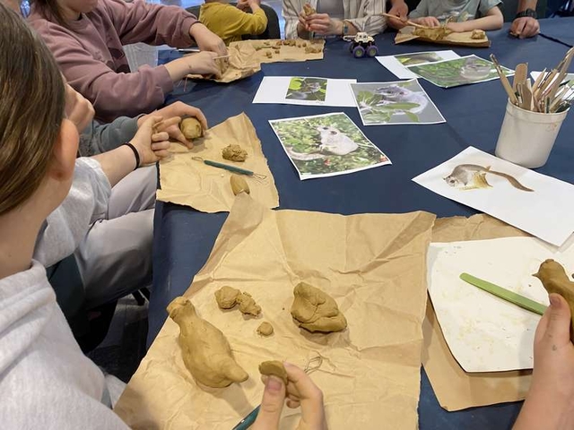 V prvem delu delavnice so člani likovnega krožka skupaj z likovnima pedagogoma ustvarjali polhe iz gline ter se ob tem preizkusili v kiparskih tehnikah in lastni domišljiji. Navdušenje, ustvarjalnost in dobra energija so hitro napolnili prostor.