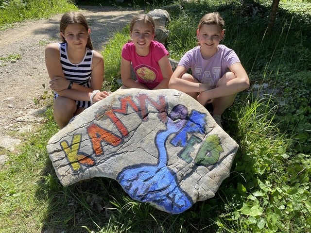 Taja, Tinkara in Nastja iz 6.b razreda so poslikale letošnji kamen, ki opozarja na KAMNORED.
