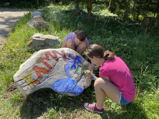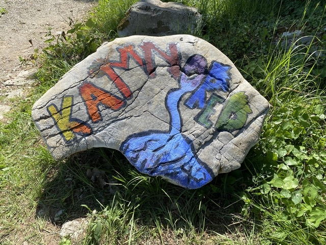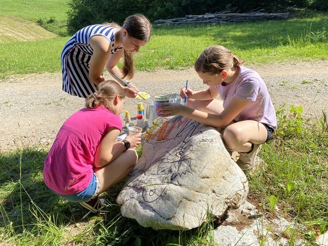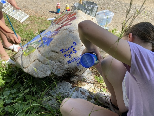 Likovniki pa smo poslikali kamen, ki mimoidoče opozarja na naravne znamenitosti, saj se sprehajalci zelo radi ustavijo ob poslikavah, poklepetajo in se fotografirajo.