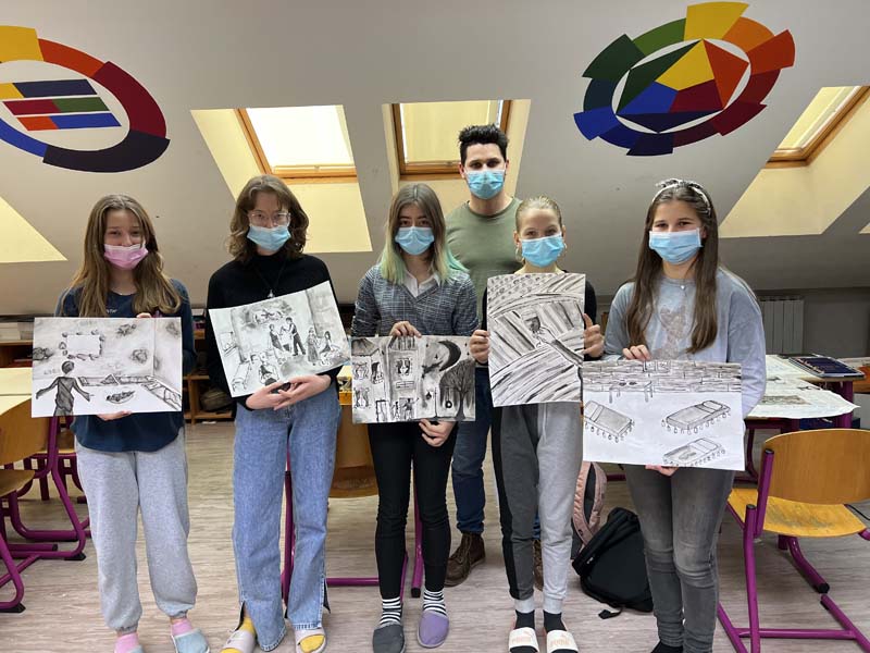 Za 3. mesto bil nagrajen akvarel Maruše Šneler iz 9. a razreda, med pohvaljena dela sta se uvrstili akvarela Sare Miketič in Maše Žnidaršič.