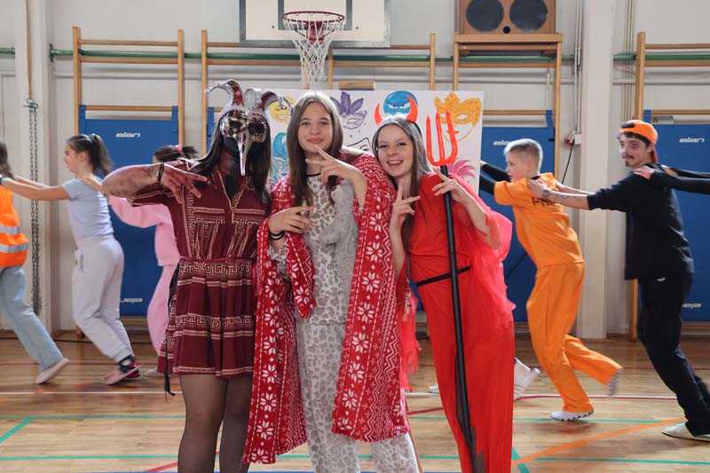 Tudi letos smo na naši šoli veselo in ustvarjalno pustovali. Velika večina učencev in učiteljev je cel dan preživela v maskah, ki so pričarale pravo pustno vzdušje. Še posebej zanimivo je bilo 5. in 6. šolsko uro, ko je v telovadnici potekal izbor najboljših mask. Komisija je imela zelo težko delo, saj je bilo izvirnih idej res veliko, nagrade pa so tudi letos prispevali devetošolci.