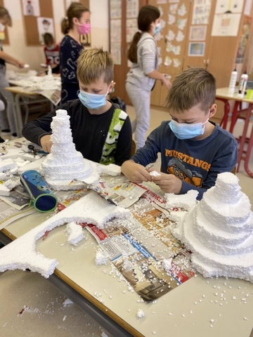 Učenci 5.a in 5.b razreda so v torek, 7. 12. 2021, izvedli tehniški dan. Iz stiroproja so izdelali model plastnic.