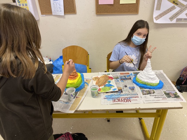Veliko truda so vložili v rezanje stiropora, merjenje, računanje in pravilno barvanje modela, ki jim bo služil za lažje razumevanje reliefa, nadmorske in relativne višine.