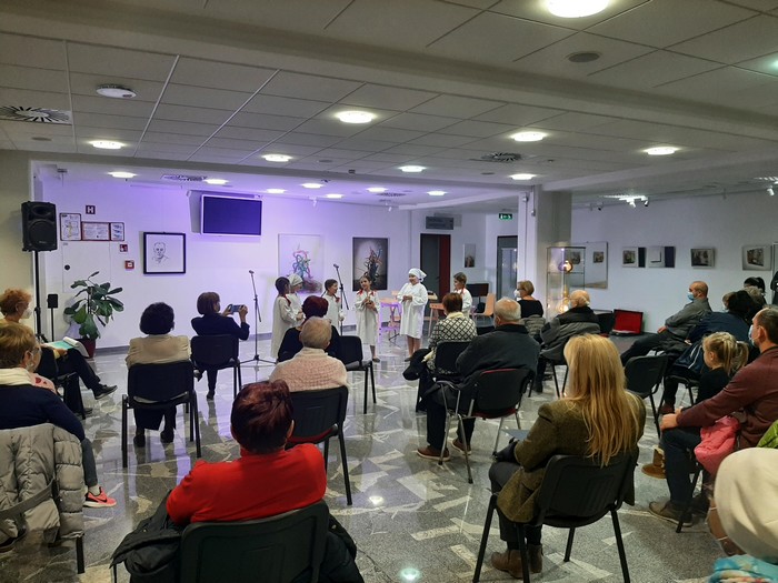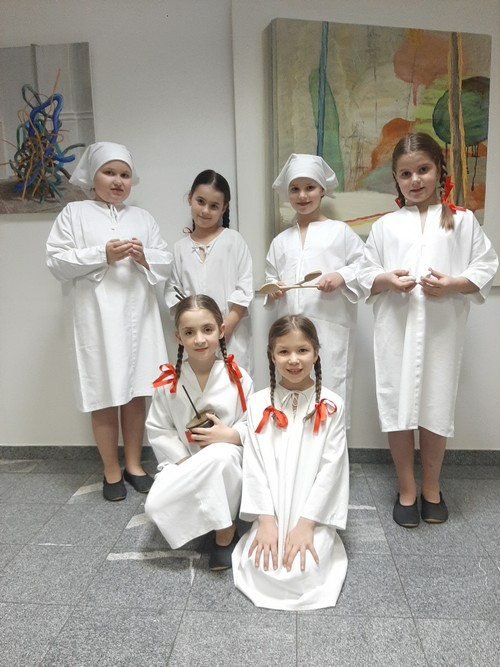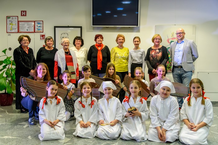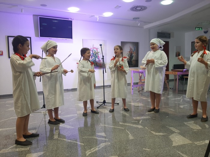 Šolska folklorna skupina je literarni večer popestrila z ljudsko pesmijo Srečali smo mravljo.