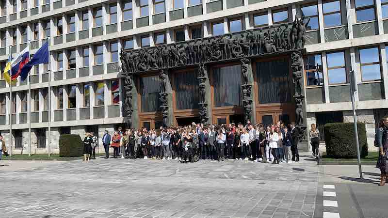 V ponedeljek, 11. 4. 2022 je v veliki dvorani Državnega zbora RS potekalo zasedanje 32. nacionalnega otroškega parlamenta. Skupaj z preostalimi predstavniki Dolenjske smo se zgodaj zjutraj odpravili v Ljubljano. Že na poti smo si izmenjali svoja mnenja o letošnji temi – moja poklicna prihodnost. Zajemala je 5 podtem: »Moj poklic: skrbi, pričakovanja, znanja in veščine; Poti do mojega poklica; Poklici sedanjosti in prihodnosti; Slovenija, Evropa, Svet – pozitivno, negativno, zanimivo; Vpliv covid-19 na izbiro poklica.« Ob prihodu pred Državni zbor smo najprej vsi prejeli priponke z imeni in regijo, ki jo zastopamo, saj se nas je udeležilo kar 111 mladih parlamentarcev. V uvodu sta nam spodbudne besede namenila predsednik Državnega zbora RS g. Igor Zorčič in predsednica ZPMS ga. Darja Groznik, kasneje pa nas je pozdravil tudi predsednik RS g. Borut Pahor. V začetku dela smo se razdelili v skupine, kjer je vsaka v svoji sejni sobi obravnavala eno temo. V skupinah smo določili tudi poročevalca, ki je po končanem debatiranju predstavil naša razmišljanja in mnenja še ostalim parlamentarcem. Po končanih predstavitvah se je nadaljevalo plenarno zasedanje v katerega smo bili vključeni vsi parlamentarci. Vodili smo dolg, premišljen pogovor. Ko se je čas za diskutiranje iztekel, so razglasili še temo za 33. nacionalni Otroški parlament z naslovom »Duševno zdravje otrok in mladih«. V parlamentu so nas pogostili tudi s kosilom.