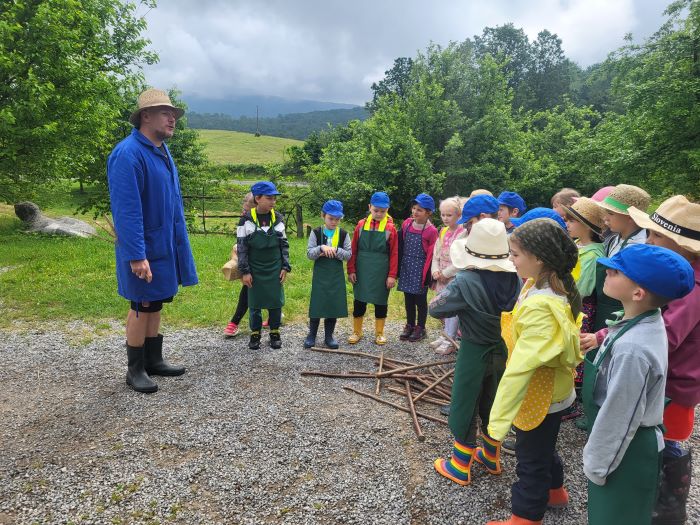 V torek, 6. 6. 2023, je bil za prvošolce prav poseben dan. Z avtobusom so se odpeljali do kmetije Raztresen, kjer so se vrnili v stare čase in se v delovni obleki podali na raziskovanje kmečkega življenja.