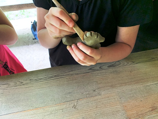 Ob prihodu smo najprej pomalicali, nato pa sodelovali v različnih delavnicah. Izdelovali smo glinene petelinčke. Ogledali smo si staro kmečko hišo in črno kuhinjo v njej, izdelali ptičke iz kvašenega testa in jih spekli v krušni peči. Izvedeli smo veliko zanimivosti iz življenja ljudi nekoč. Ogledali smo si živali, ki tam domujejo. Videli smo ponije, kokoši in avtohtone šentjernejske peteline, božali zajčka in majhne muce. Preizkusili smo se v »škupanju«, starem kmečkem običaju pripravljanja slame za pokrivanje streh. Med seboj smo se pomerili v igri metanja podkve. Ob koncu smo lahko v trgovinici z ročno izdelanimi glinenimi izdelki kupili spominke.