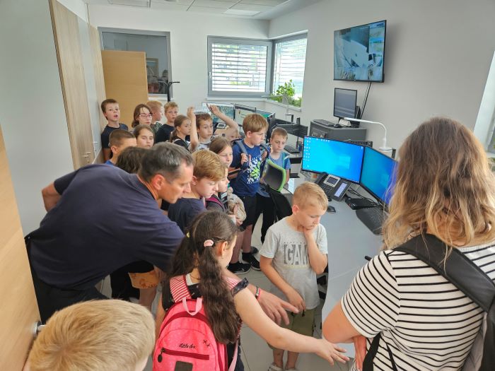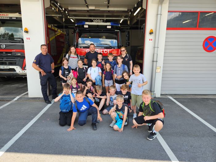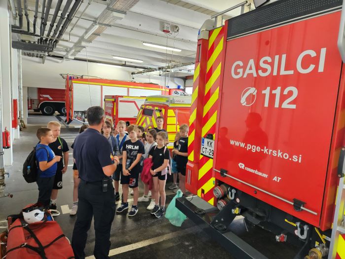V petek, 9. 6. 2023, smo se z učenci, ki so v tem šolskem letu obiskovali interesno dejavnost Društvo mladi gasilec na OŠ Semič in s tistimi, ki so s kulturno točko sodelovali na prireditvi ob 20-letnici belokranjske regije, odpravili na izlet v Krško. Tam smo obiskali Poklicno gasilsko enoto. Vodja izmene nam je najprej predstavil življenje in delo poklicnih gasilcev. Ogledali smo si njihova vozila in opremo v vozilih. Preizkusili smo se v zbijanju tarče s curkom vode iz ročnika. Ogledali smo si tudi prostore njihove poklicne enote. Najbolj zanimivo pa je bilo, ko sta se učiteljici, kot pravi gasilki, spustili po drogu.