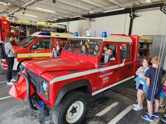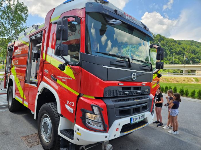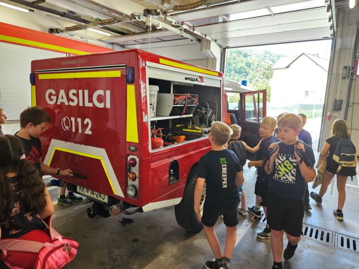»Najbolj mi je bilo všeč, ko smo »gasili« ogenj. V telovadnici smo preizkusili fitnes naprave. V gasilskem avtu smo se tudi slikali.« (Hana)