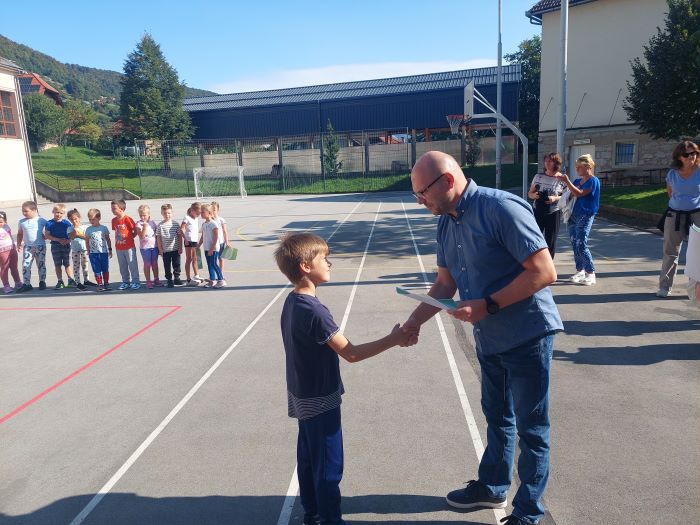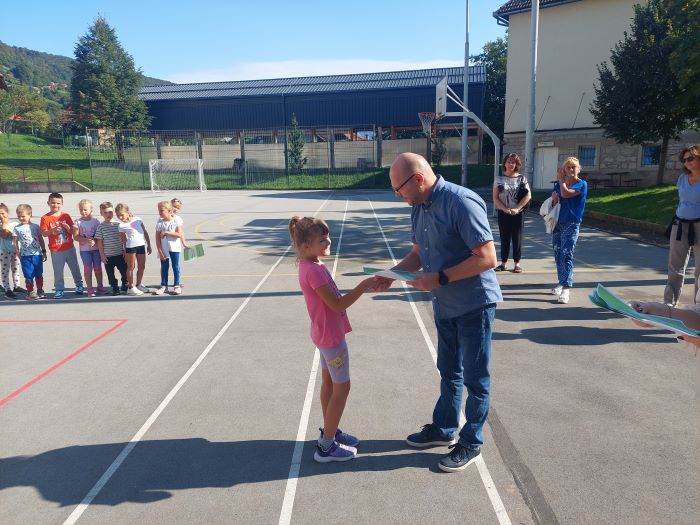 Udeleženci množičnega teka so na koncu s strani Atletske zveze Slovenije prejeli priznanje, ki ga je podelil ravnatelj naše šole Tomaž Pavlakovič.