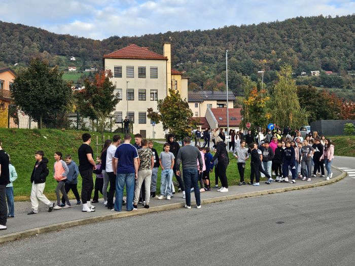 Medtem ko so vsi zapuščali šolsko stavbo, so nekateri učenci in učitelji naleteli na nepričakovano oviro, ki jim je zaprla pot. A brez panike – hitro so poiskali drugo evakuacijsko pot in se varno odpravili proti zbirnemu mestu. Njihova hitra reakcija in zbranost sta bila ključnega pomena.