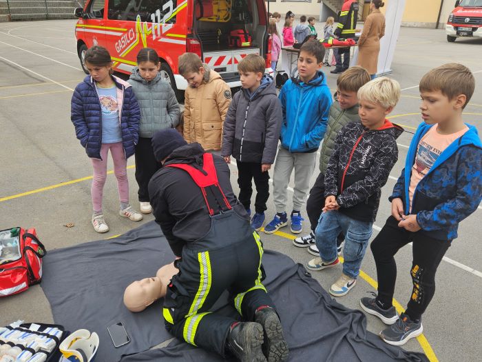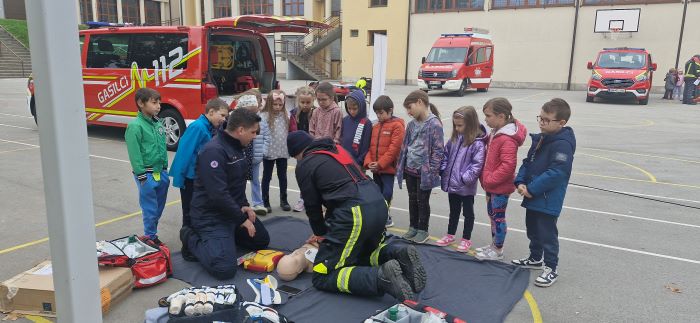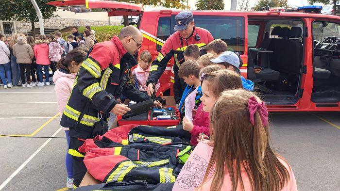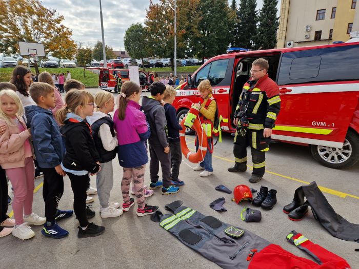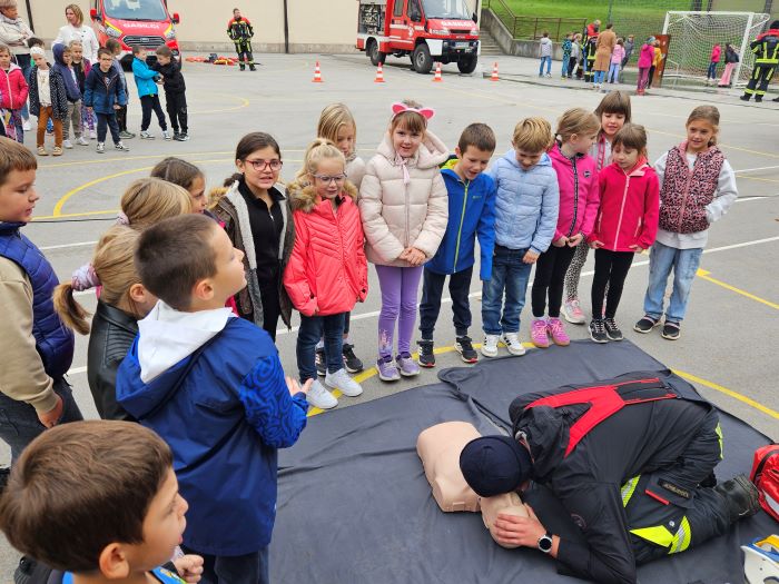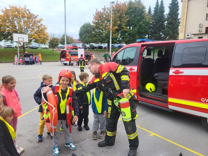 Na šolskem igrišču so predstavili postopek oživljanja, prikazali potapljaško opremo, gasilska vozila ter ostalo gasilsko opremo. Učenci so se lahko tudi sami preizkusili v gasilskih spretnostih – od zbijanja tarč do preizkusa moči vodnega curka. Poleg vsega tega so gasilci za učence pripravili še gasilske pobarvanke in za konec poskrbeli za sladko presenečenje, ki je na obraz vsakega učenca narisalo nasmeh.