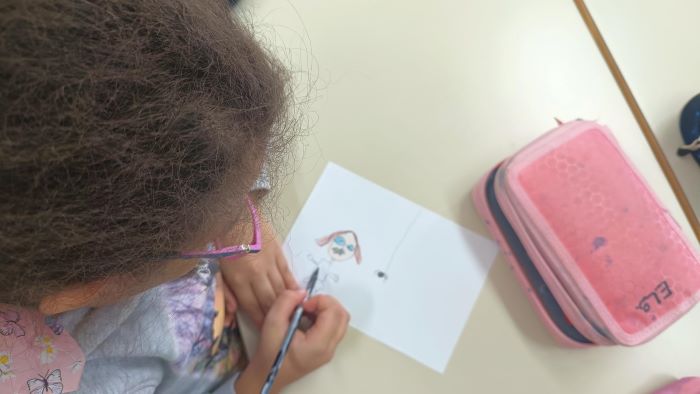 Dan smo začeli z uvodno predstavitvijo, nato pa so učenci izbirali sličice, ki so najbolje prikazovale njihovo trenutno počutje. Sledil je pogovor o različnih čustvih – jezi, veselju, žalosti, strahu in gnusu – ter o situacijah, v katerih jih najpogosteje občutimo. Na delovnem listu so povezovali čustva z deli telesa, kjer jih najbolj občutijo, in opisovali, kaj se takrat dogaja v njihovem telesu.