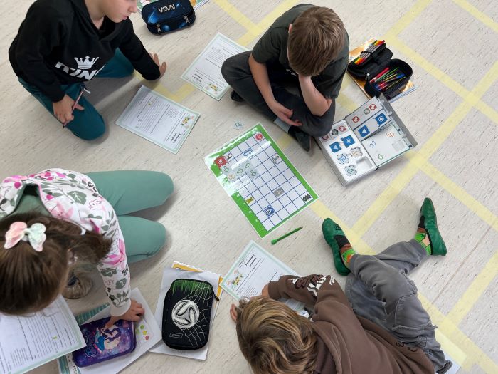 Pri prvi aktivnosti v mrežo nameščali ovire ter s pomočjo puščic (levo, desno, naprej, nazaj) sestavljali ukaze gibanja. Na podlagi sestavljenih algoritmov so nato svojega sošolca verbalno usmerjali do cilja. Druga skupina učencev je reševala naloge na delovnih listih, kjer so morali sami risati pot oziroma zapisati določene ukaze. Preizkusili so se tudi v interaktivnih vajah programiranja na prenosnih računalnikih.