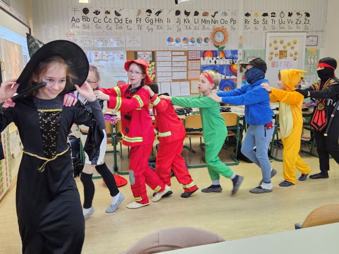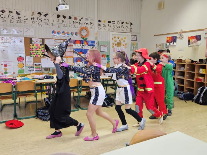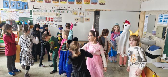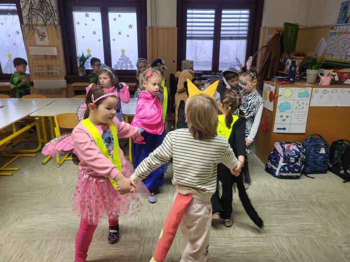 Skupaj smo rajali, plesali in se zabavali ob glasbi ter s smehom in dobro voljo simbolično odganjali zimo. Hodniki in učilnice so se za en dan spremenili v pravo pustno prizorišče, polno veselja, razigranosti in otroškega smeha.