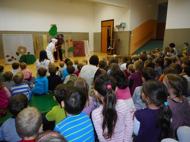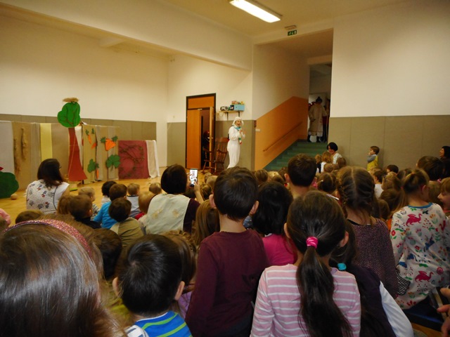 Za uvod so vzgojiteljice otrokom zaigrale lutkovno predstavo Ovčka Mili (Raquhild Scamell).