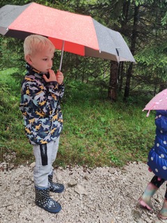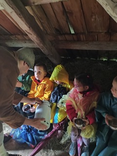 Dež nam ni pokvaril veselja ob novih dogodivščinah. Poskrbeli smo za škornje, dežnike in dežne plašče ter pogumno rešili Mojco iz Bedančevega ujetništva. Med potjo smo srečali Kekca, ki nas je popeljal skozi skrivnostni rov in do Pehte, ki nas je postregla s čajem in pecivom.
