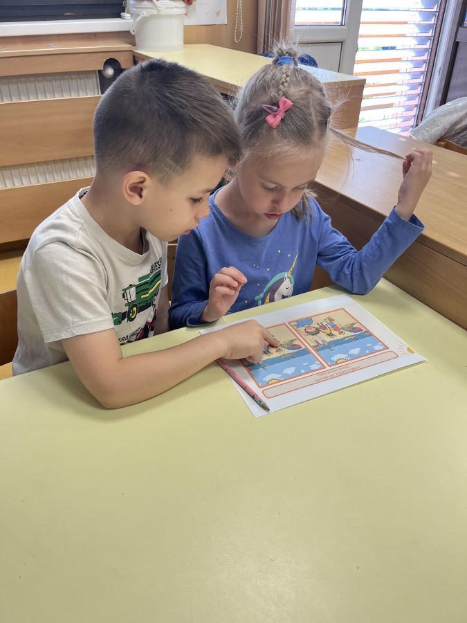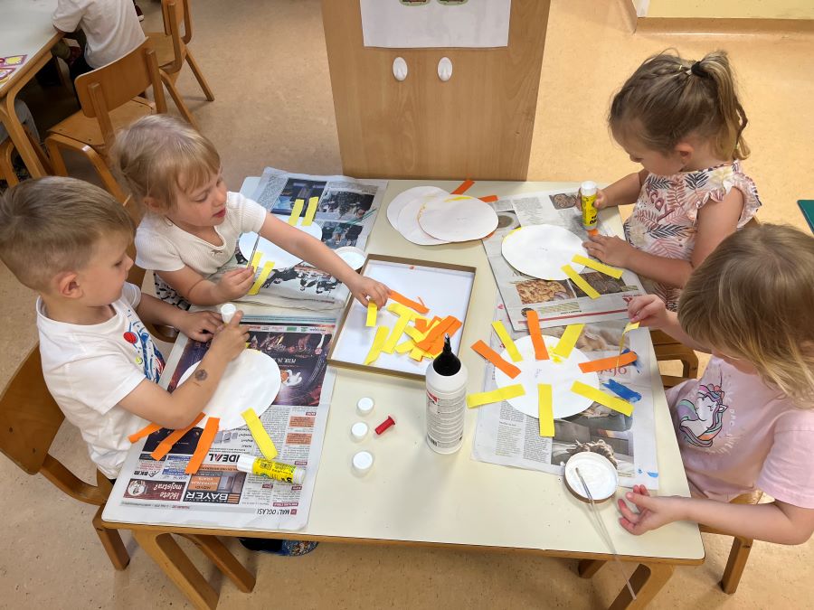 - izdelava knjižice Varno s soncem (barvanje sličic in pogovor o sličicah, kako se pred soncem zaščitimo, zakaj je to pomembno),