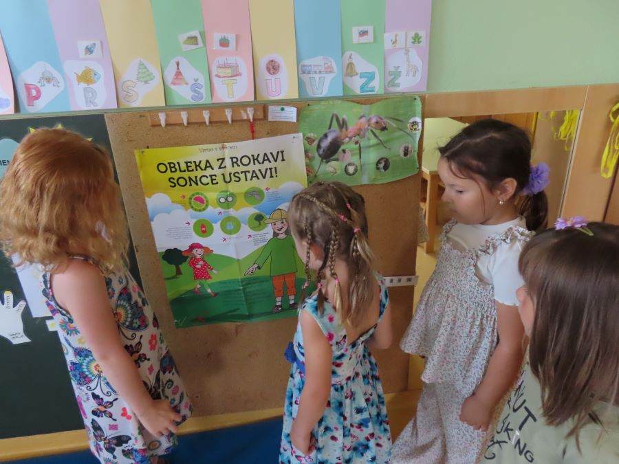 - seznanjanje otrok o škodljivih posledicah delovanja sončnih žarkov;