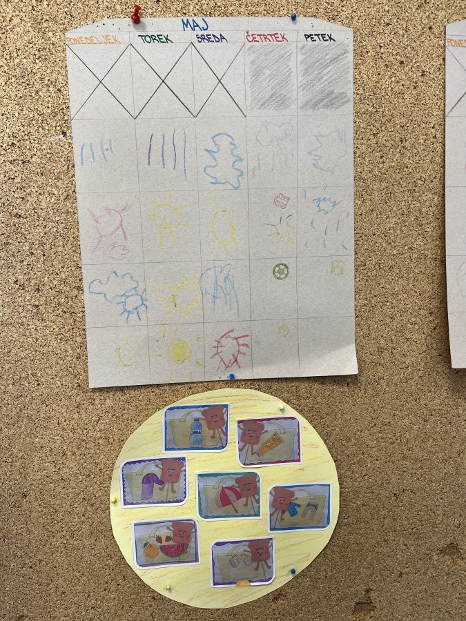 - likovno ustvarjanje (risanje, lepljenje, rezanje, slikanje),